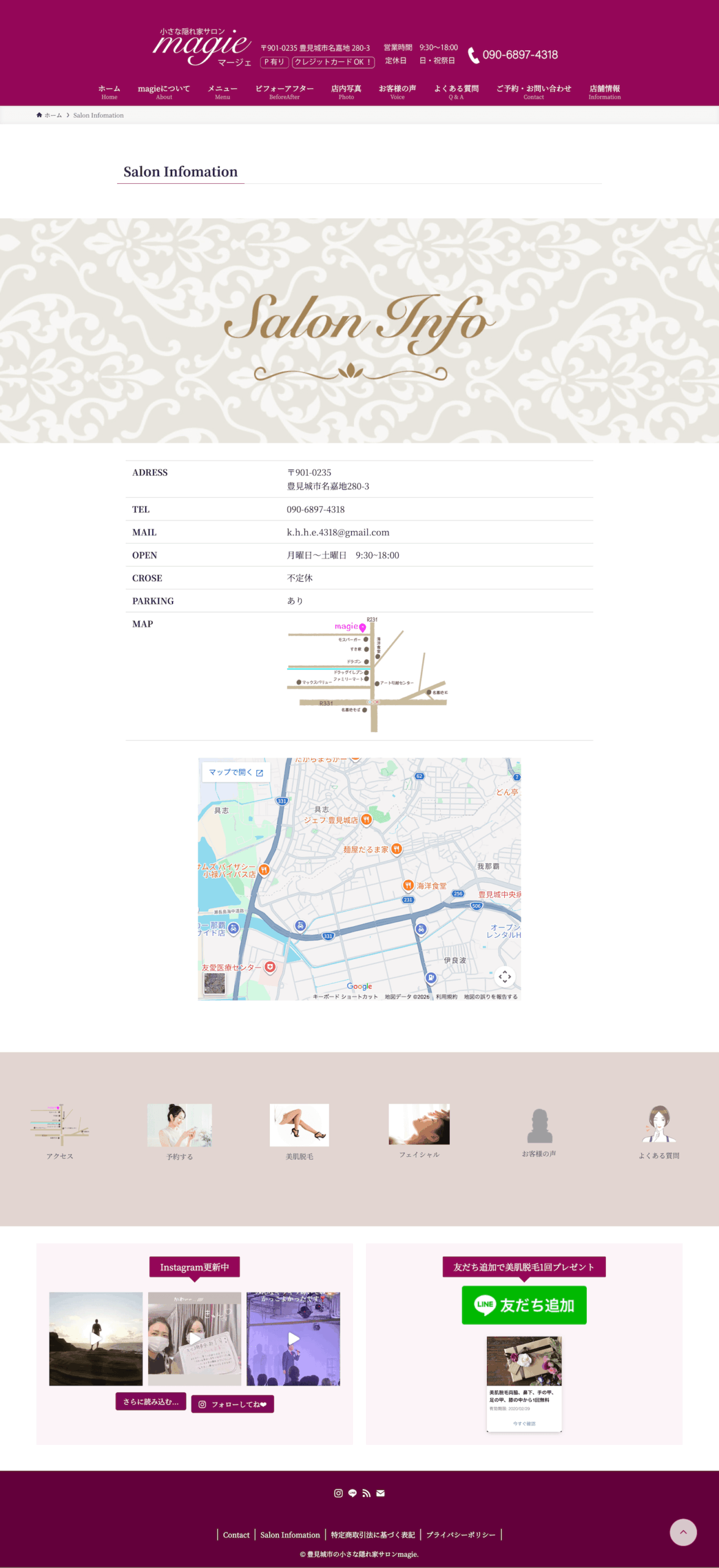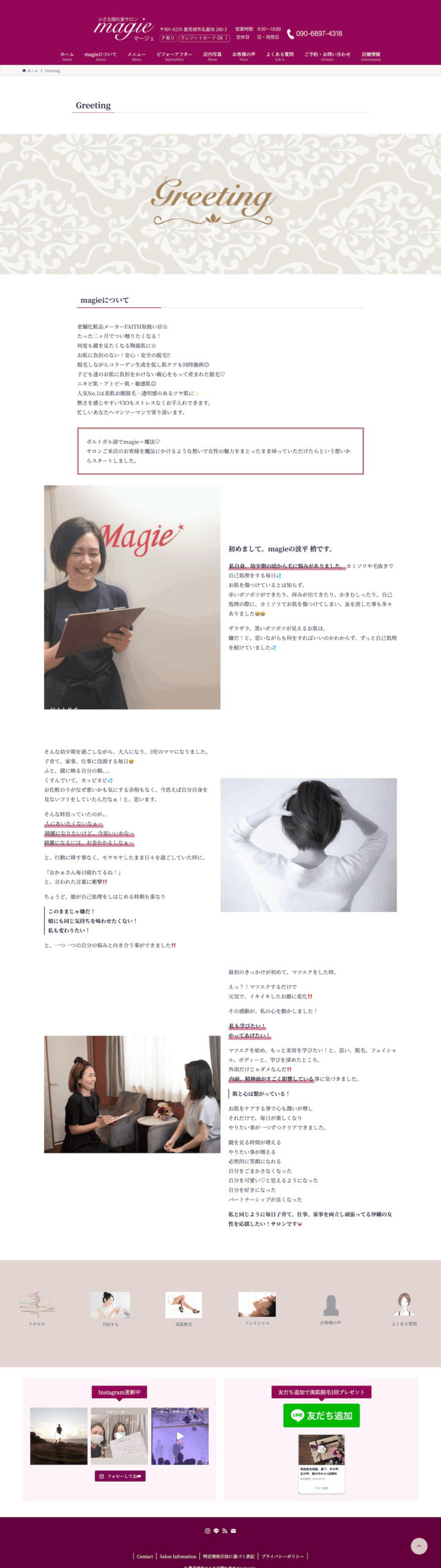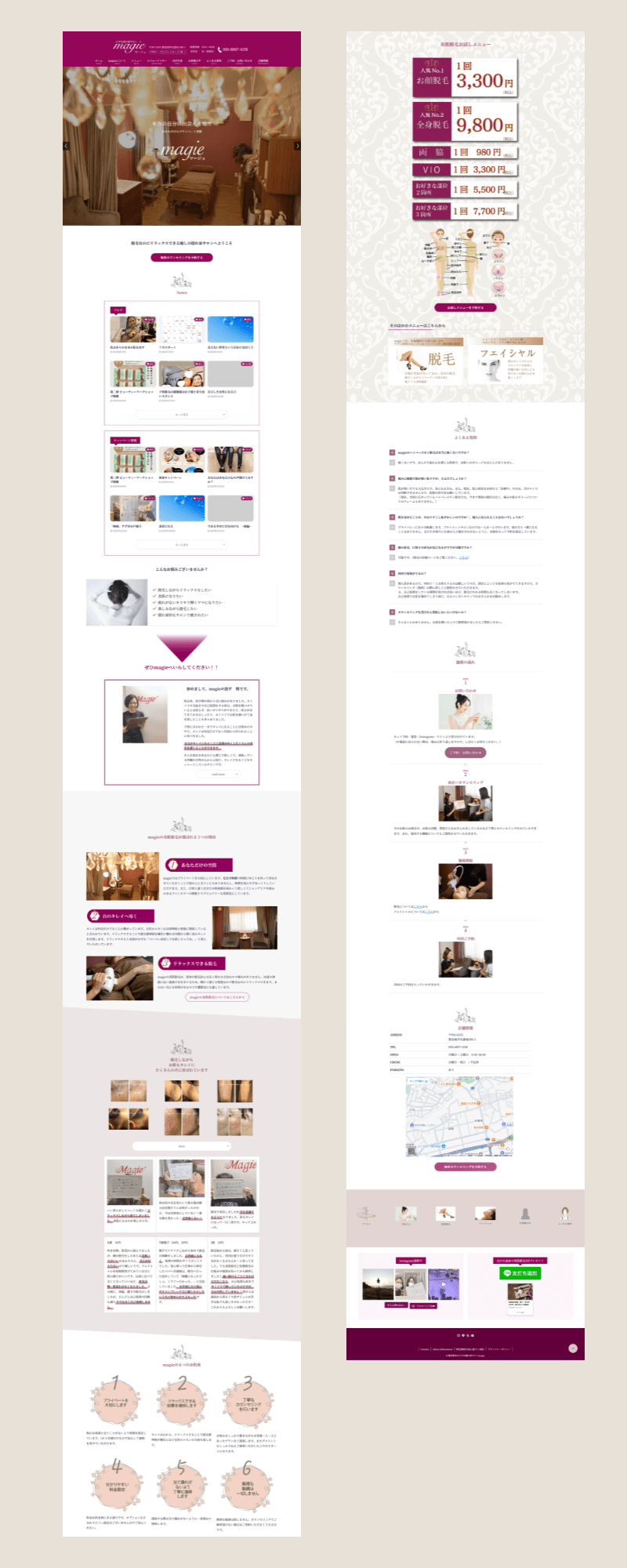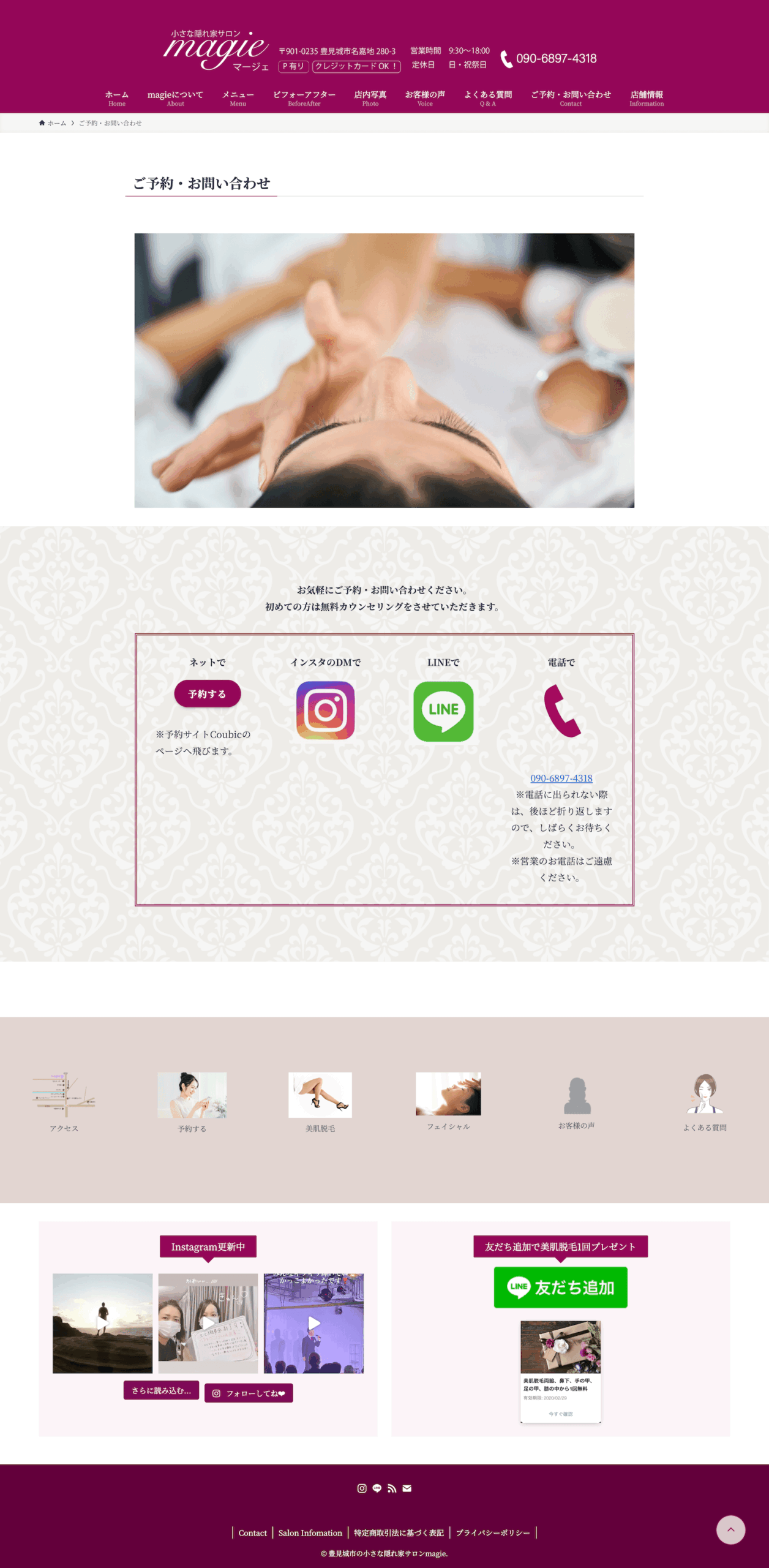 Top / Concept / Menu / ビフォーアフター / お客様の声 / よくある質問 / Contact(選択式予約フォーム)/ 店舗情報 / Legal Pages(プライバシーポリシー/特定商取引法に基づく表記)