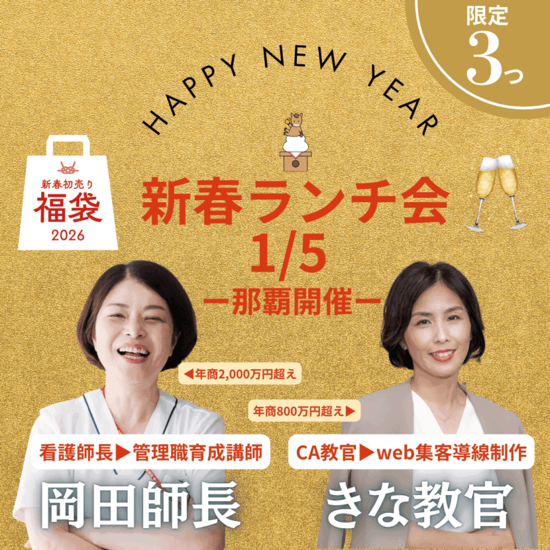 1月5日(月)那覇市内ホテルランチ会開催します価格:5,500円(税込)※詳細の時間、場所は追ってご連絡します※飲食代込み(飲み放題付き)起業の頼れる起業仲間岡田と一緒に飲んで食べて未来を語る会です会社員からの起業ってぶっちゃけどうなの?売れるまでに何をした?自分の事業ってどう思う?質問なんでもOK!飲みながら楽しく語りましょう!!