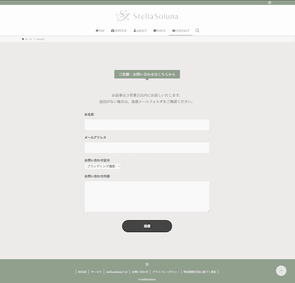Top / Service / About / Voice / Contact / Legal Pages(プライバシーポリシー/特定商取引法に基づく表記)